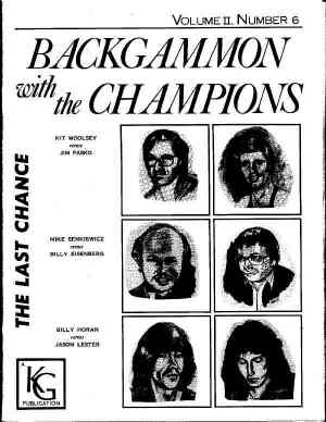 | Figure 5. Cover of the 12th and final issue of Kent Goulding's Backgammon with the Champions series. The publication was produced in 1981-83. Recognize anyone? |