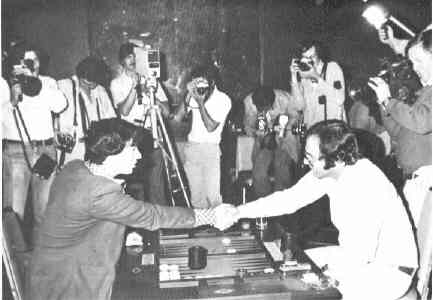 Although much of this article concentrates on the US backgammon scene, Europe was also participating in the surge. Lewis Deyong (a top promoter and player) describes the flavor in his Playboy's Book of Backgammon (Playboy Press, 1977), a must read for its entertainment value alone. Big names (and personalities) from Europe included Joe Dwek and Kumar Motakhasses. The US had Paul Magriel, probably the most publicized pure backgammon player in history. (I qualify "pure" to distinguish him from celebrities like Omar Sharif and Lucile Ball.) Magriel was featured in articles of the top magazines, the most noteworthy story being in the June 4, 1979 issue of Sports Illustrated.